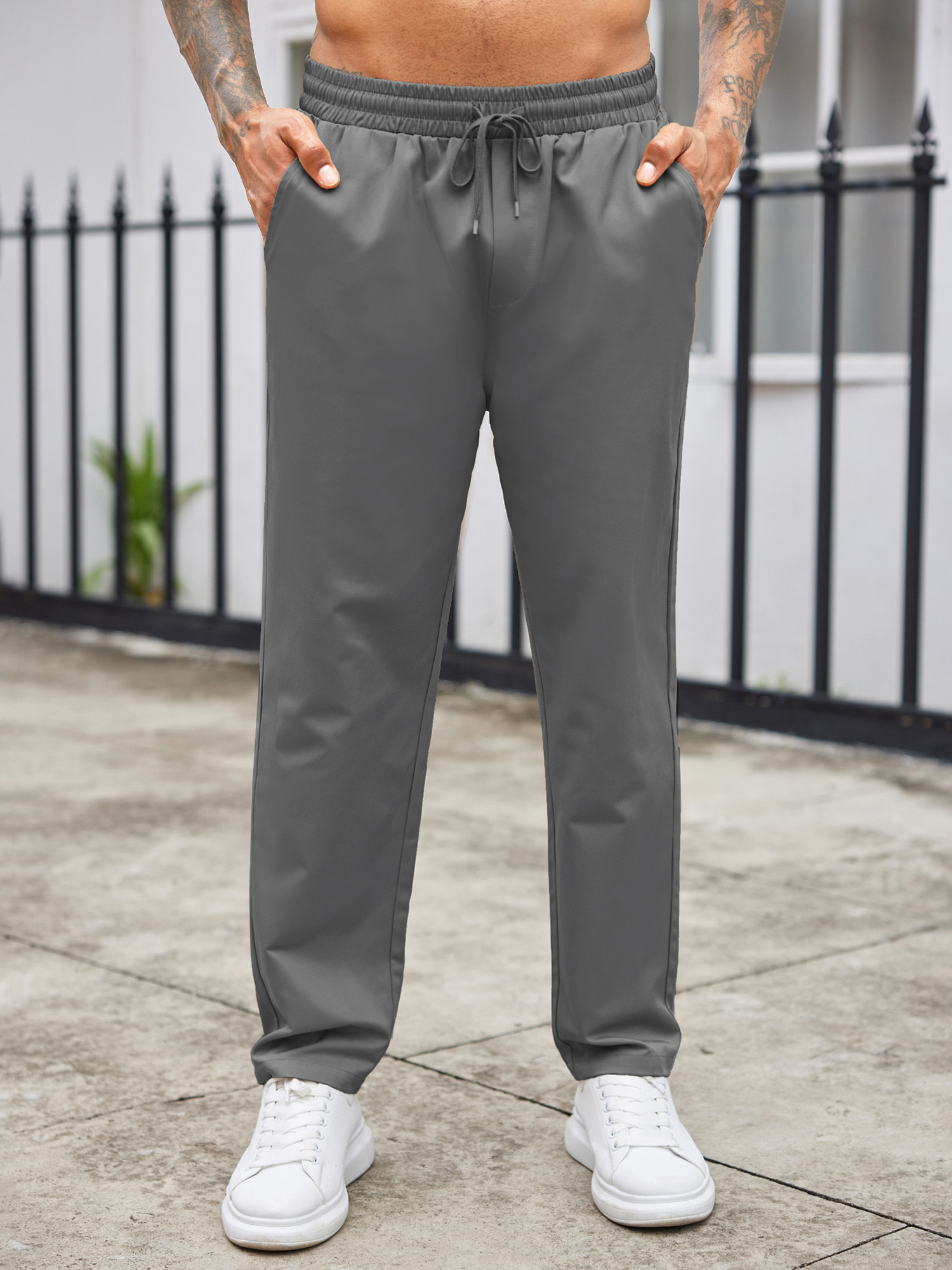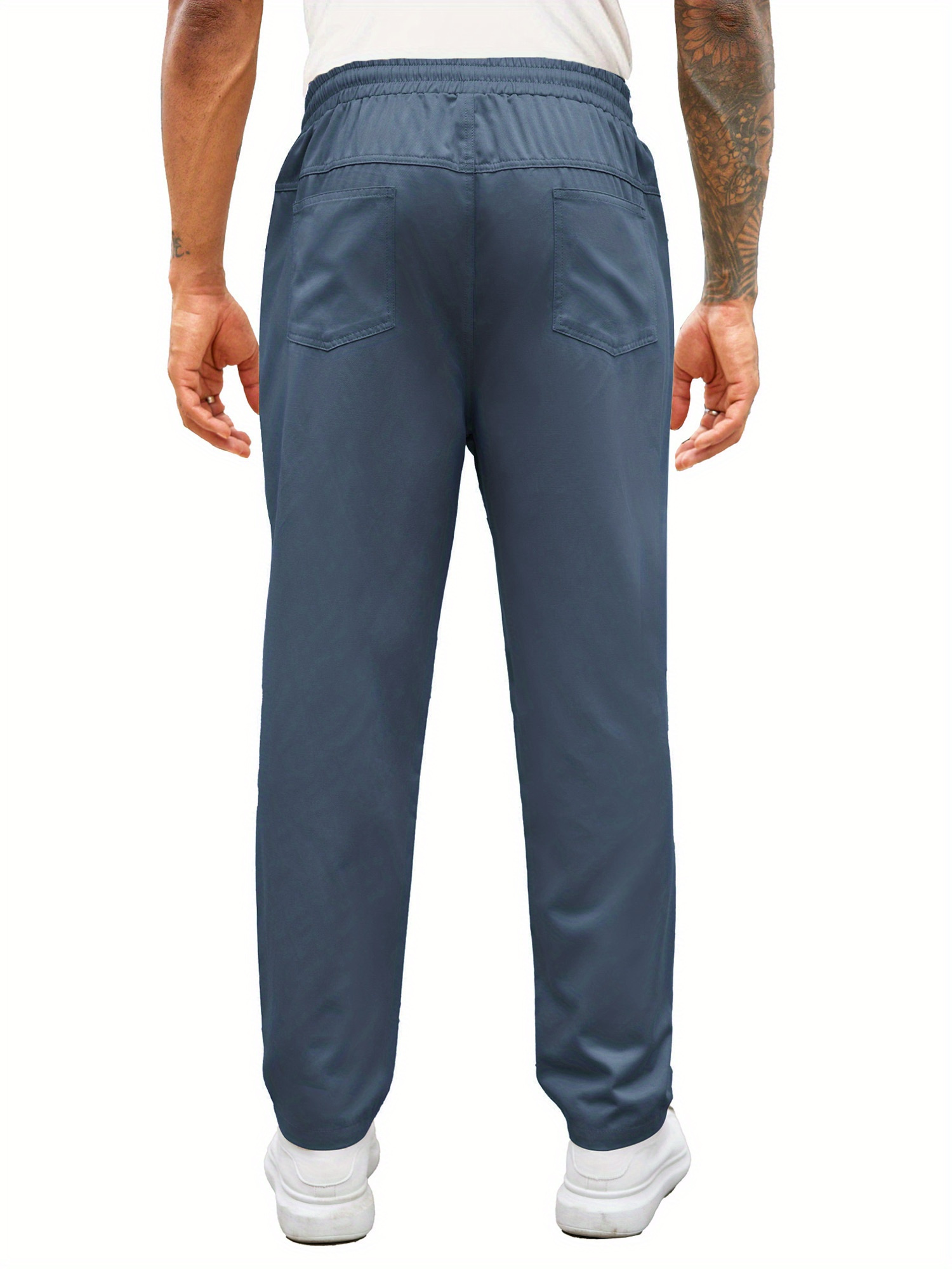 1pc Men'S Casual Cotton Drawstring Pants - Solid Color, Non-Stretch Fabric, Regular Fit, All-Season Straight Leg Cargo Trousers
