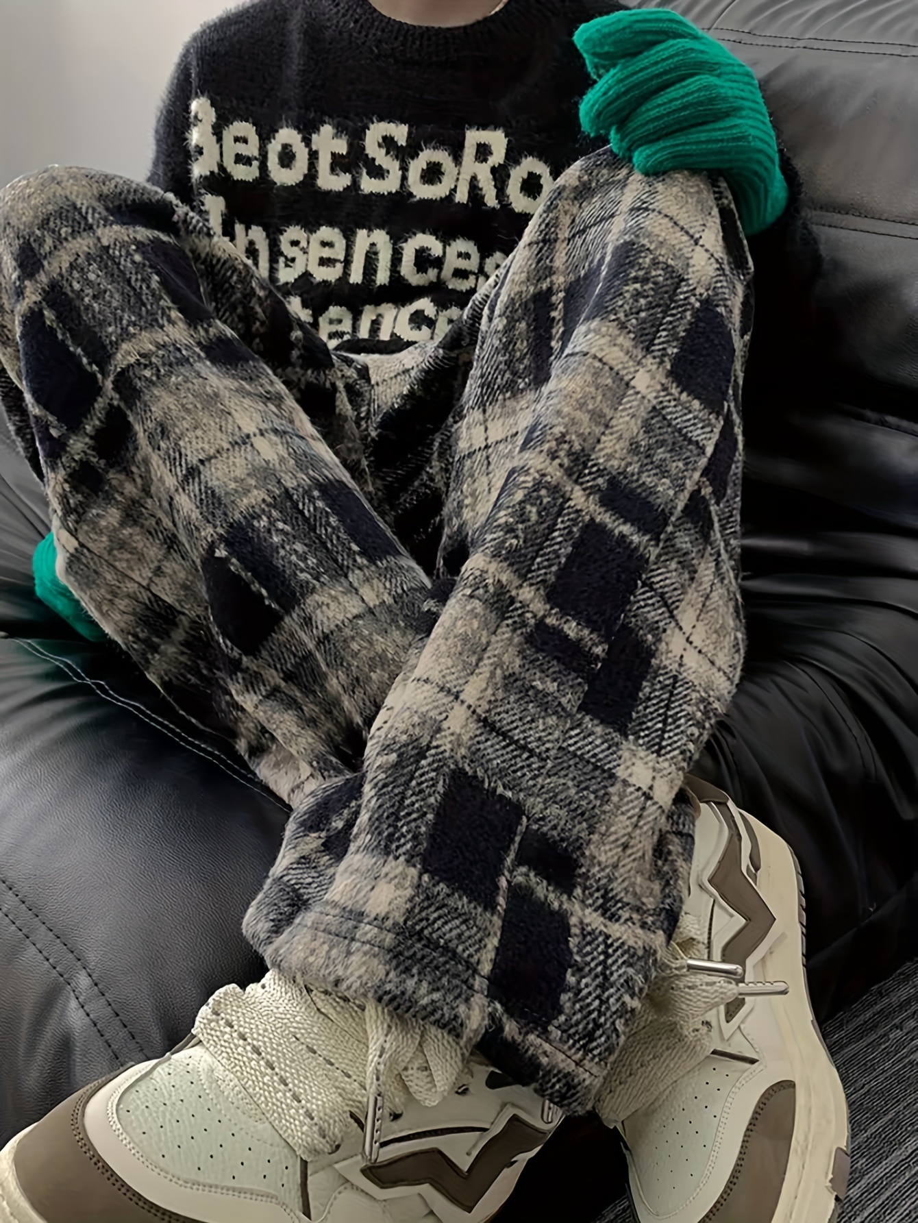 Men's Loose Fit Plaid Trousers, Breathable Comfort, Drawstring & Pockets