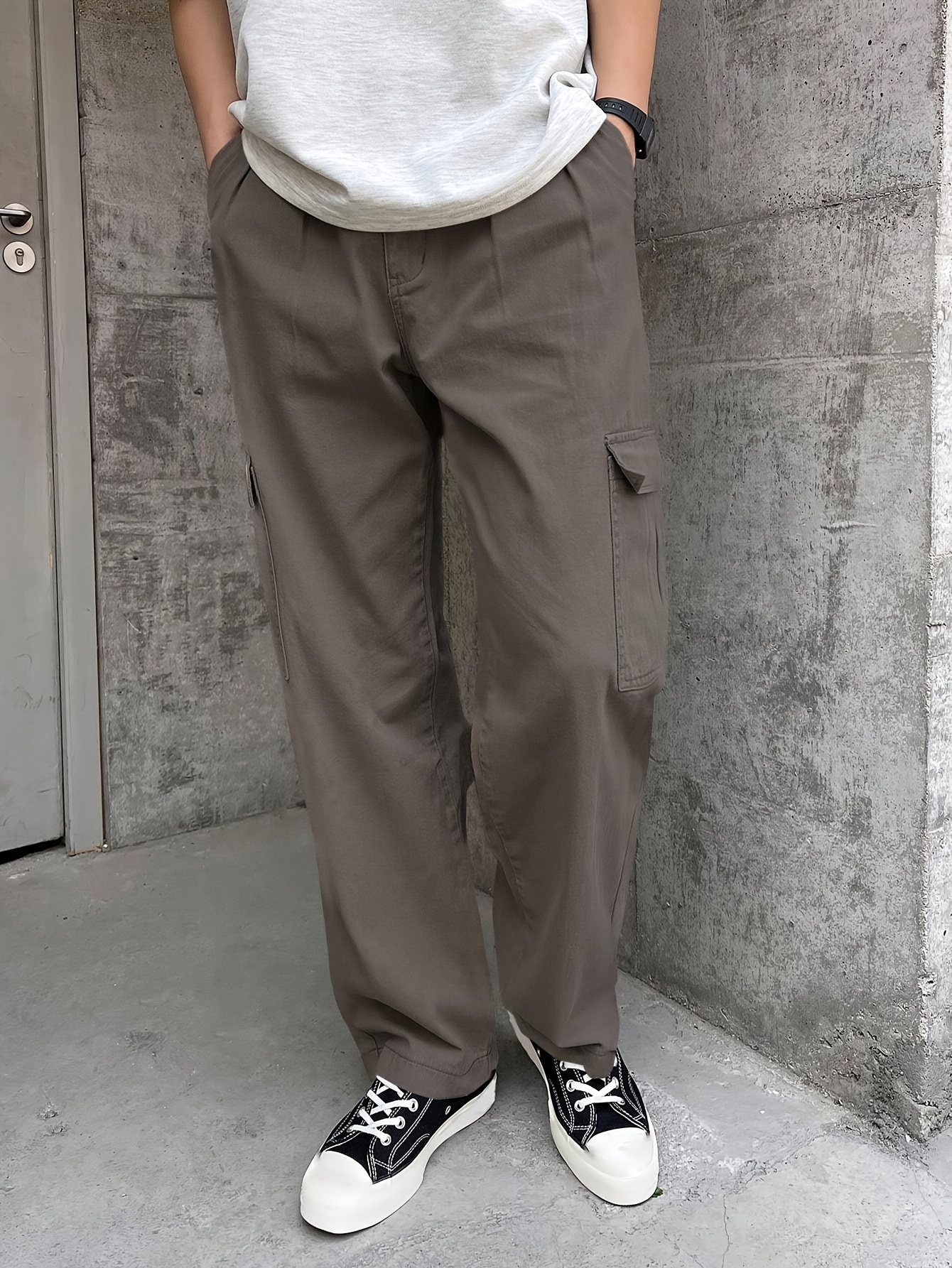1pc Men'S Casual Denim Cargo Pants, Solid Color, Non-Stretch, Regular Length, Suitable for All Seasons, with Pockets, Woven Fabric, Slim Fit