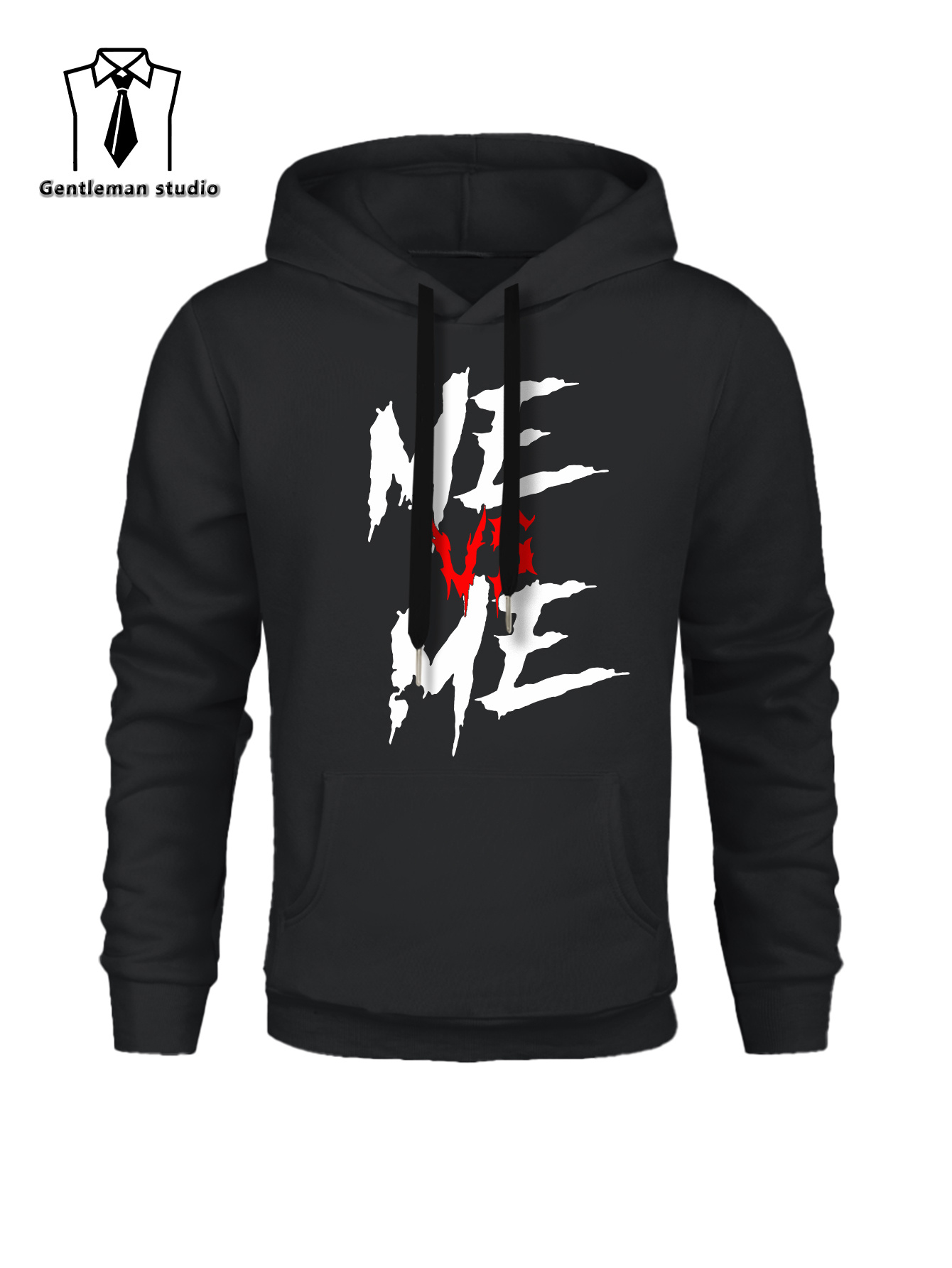 ME VS ME Print, Men's Casual and Cozy Hoodies, Trendy Long Sleeve Hooded Sweatshirt, Casual Versatile Top for Autumn Winter