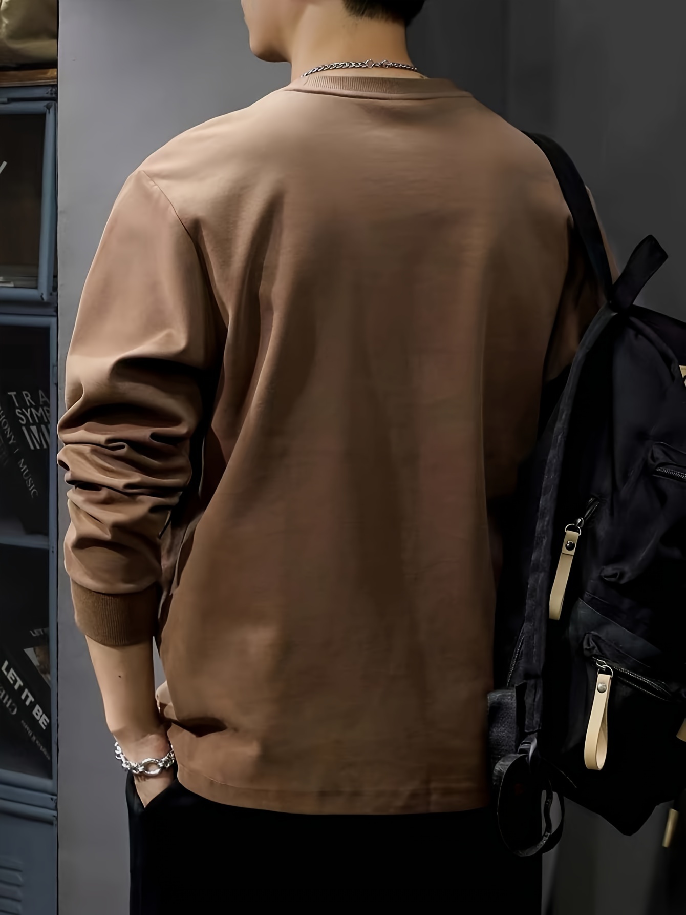 Men's Casual Cotton Long Sleeve T-Shirt - Crew Neck, Loose Fit, Spring & Fall Collection