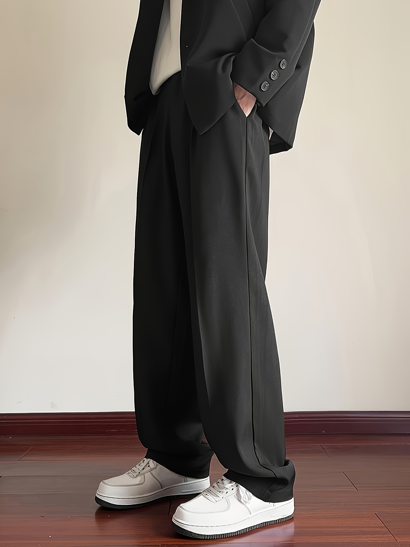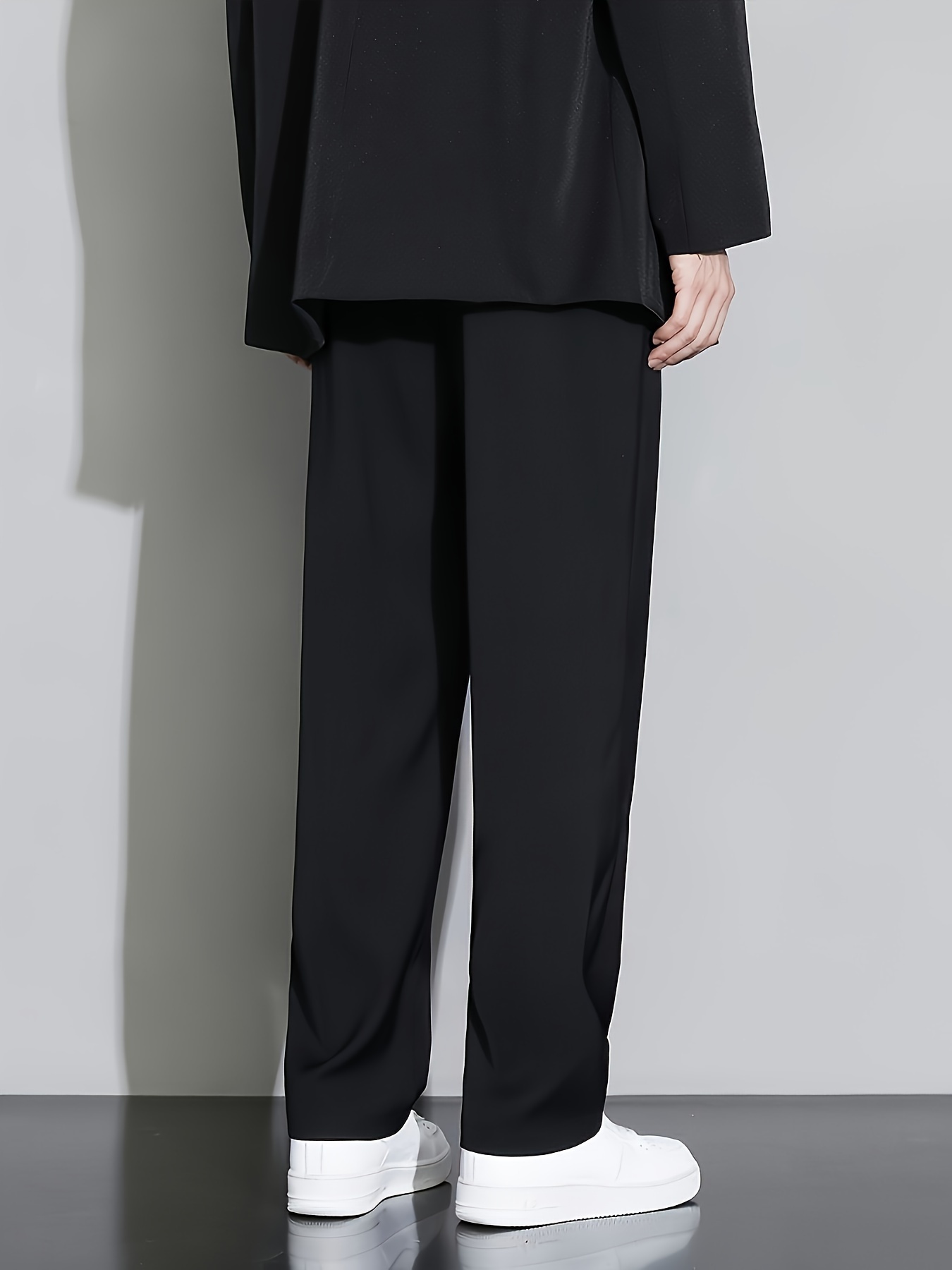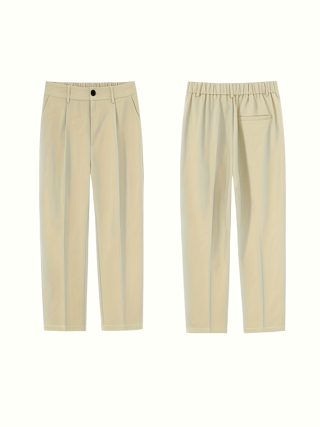Men's Casual Fashion Pants, Versatile Solid Color, Polyester Fabric, Cropped Length