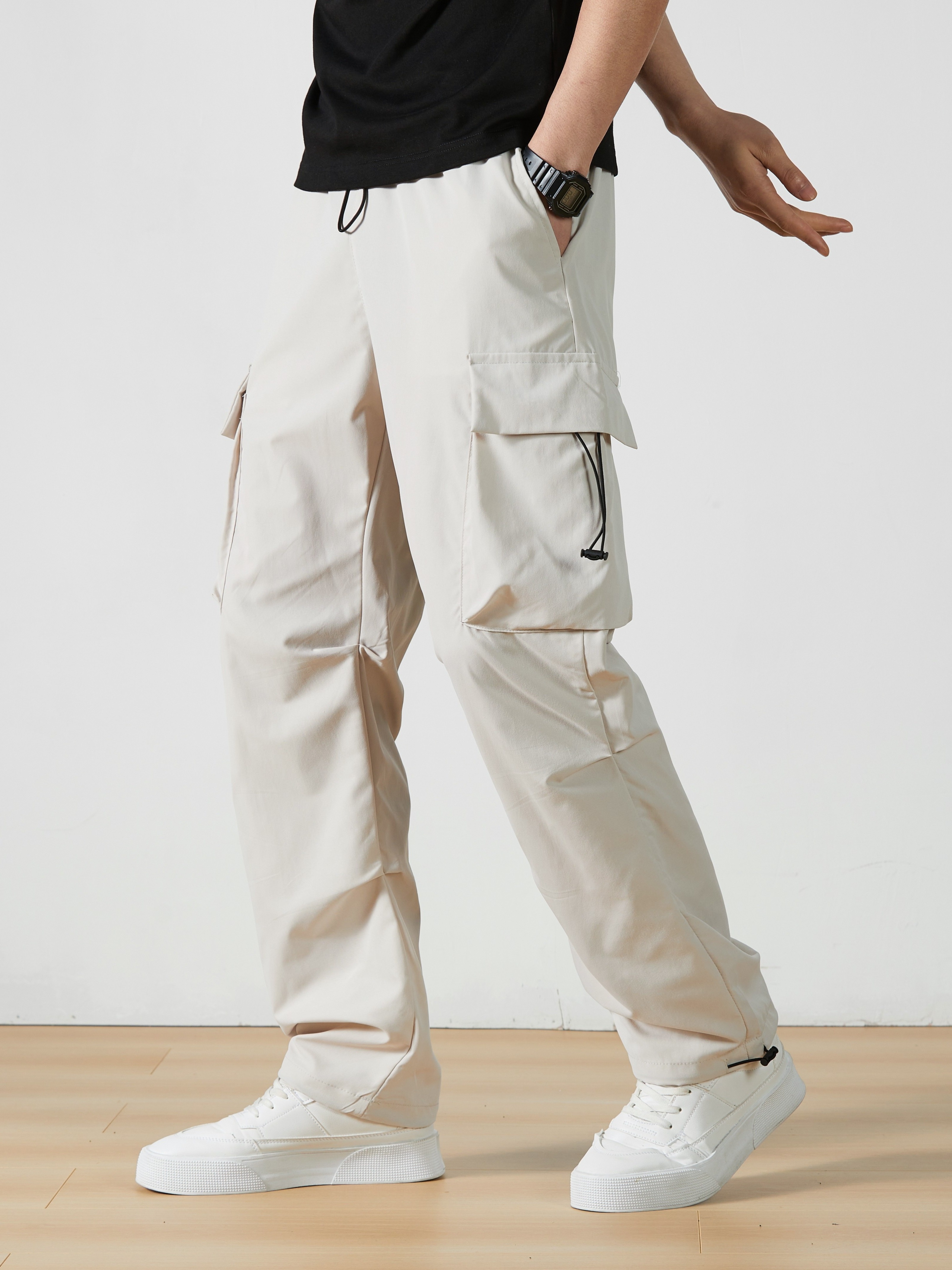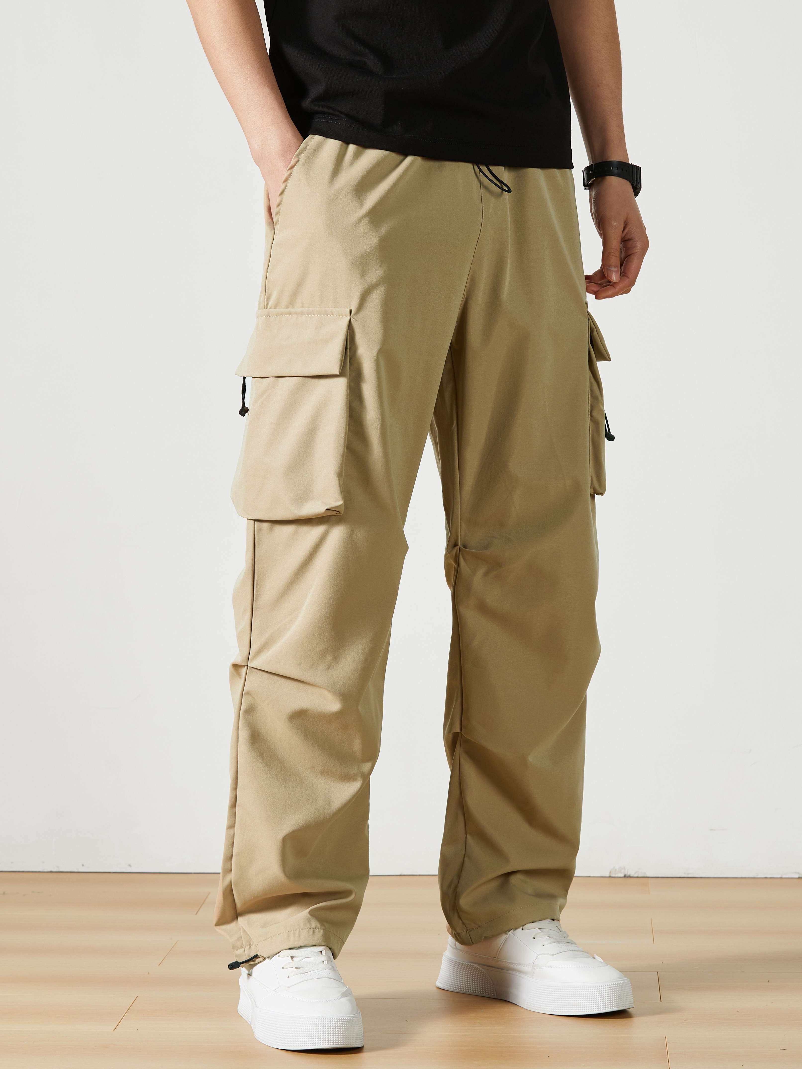 Men's Casual Flap Pocket Straight Leg Cargo Pants, Street Style Casual Pants For Outdoor Activities