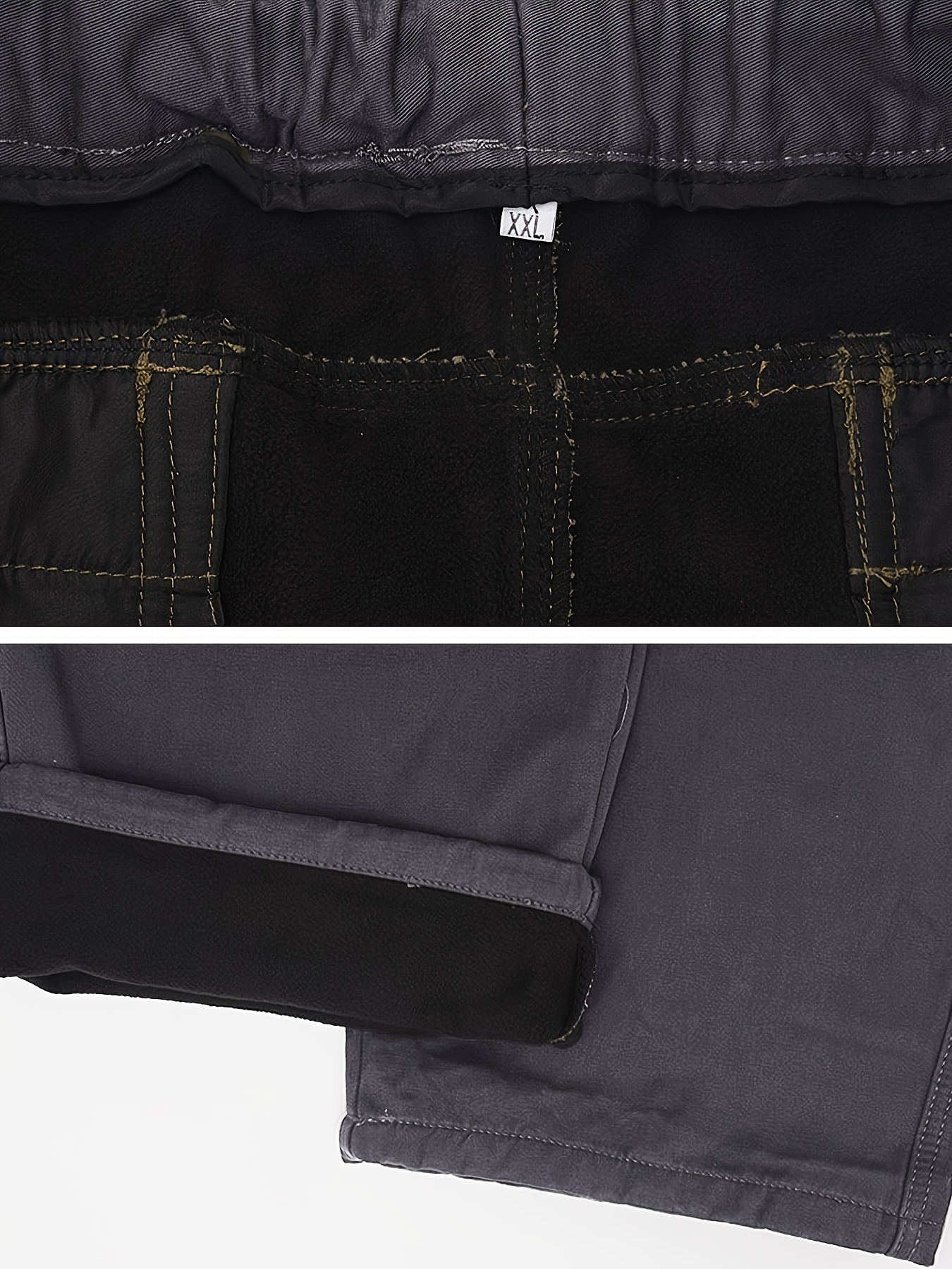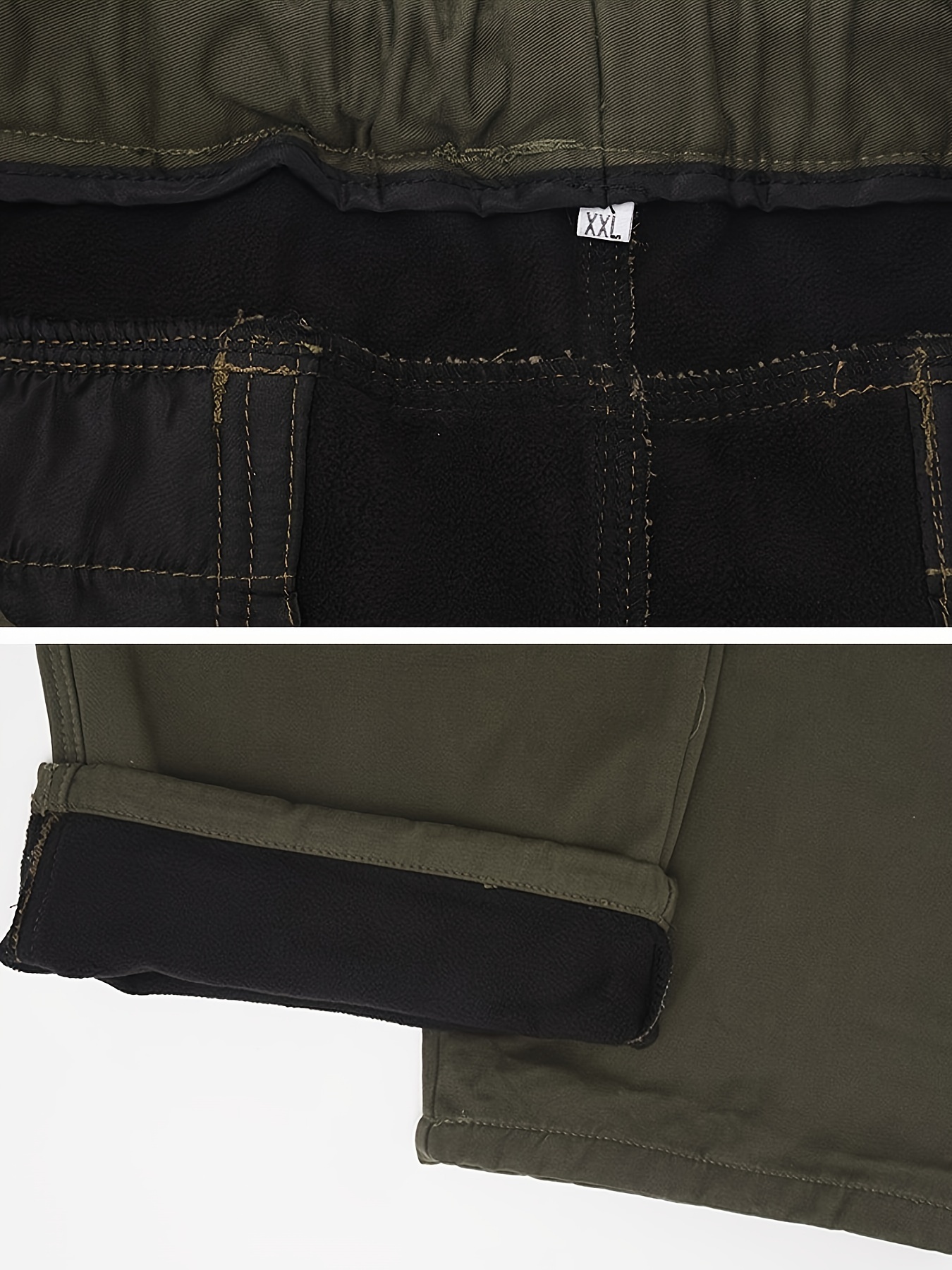 Men's Fleece Lined Casual Pants, Elastic Waist Pants Workwear Leisure Fashion Pants Cargo Pants