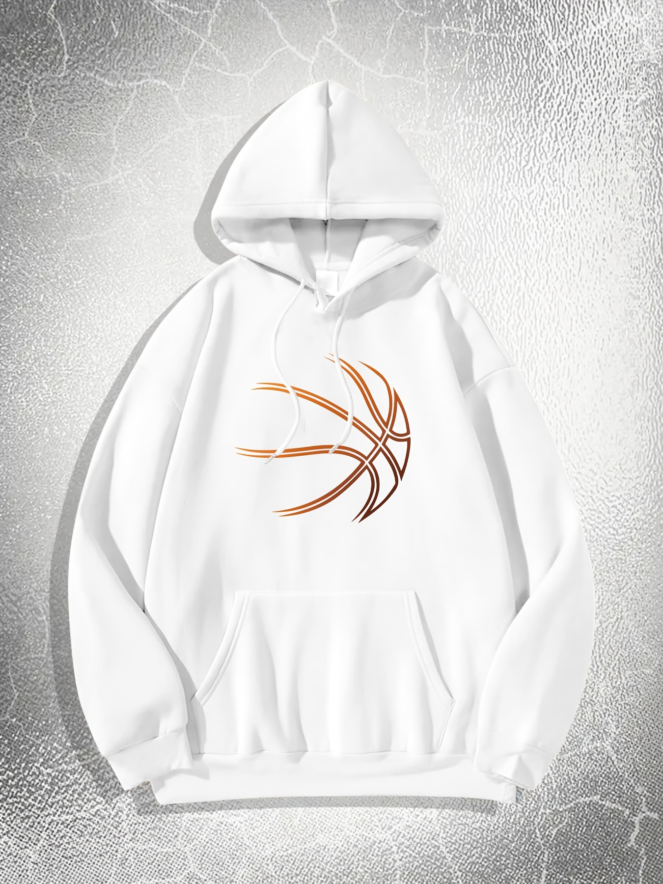 Creative Basketball Print Hoodie, Cool Hoodies For Men, Casual Hooded Sweatshirt With Kangaroo Pocket For Winter And Fall