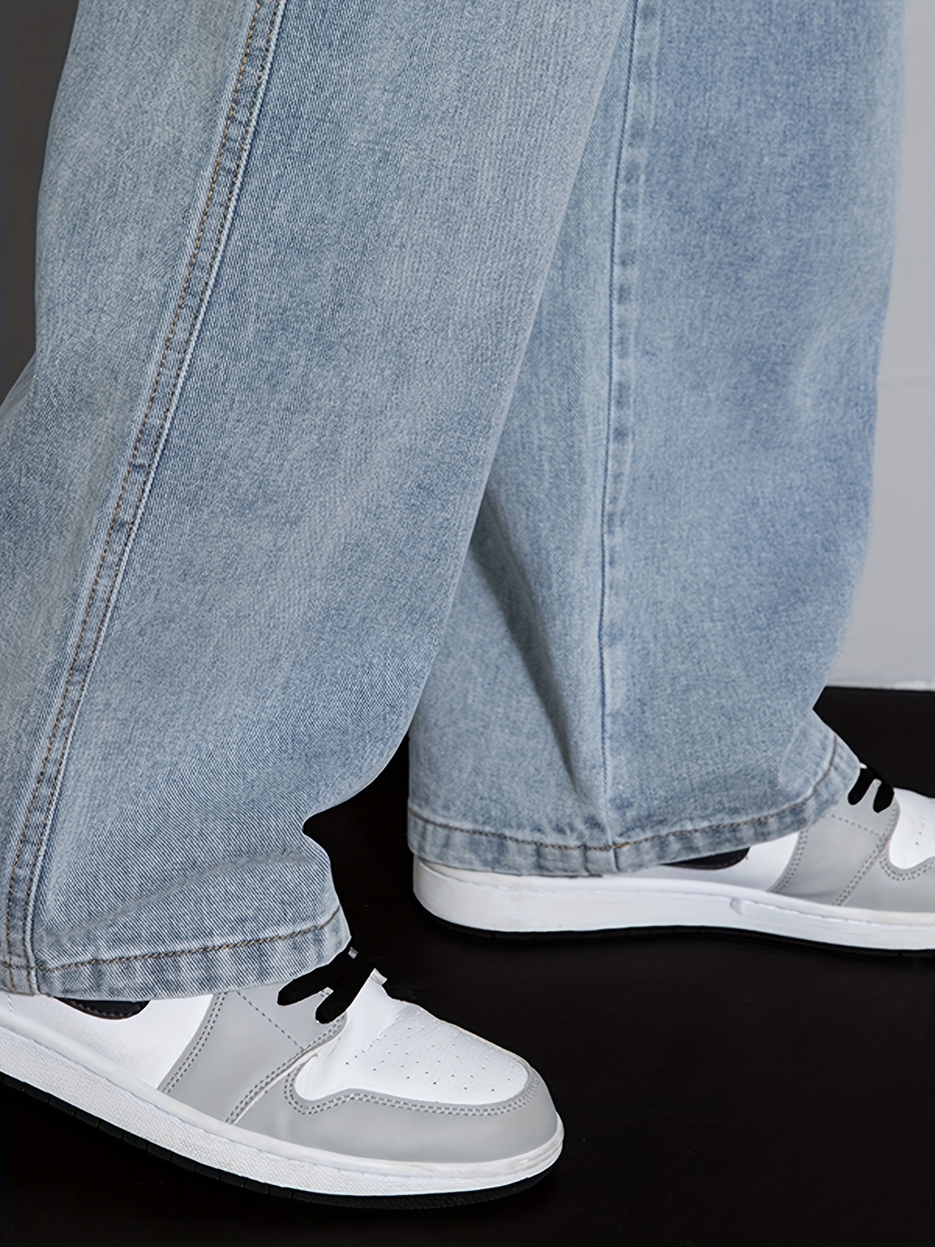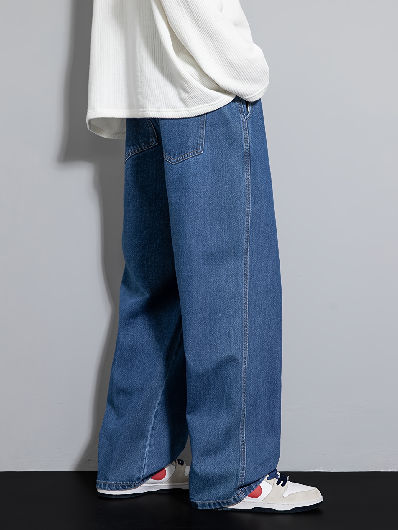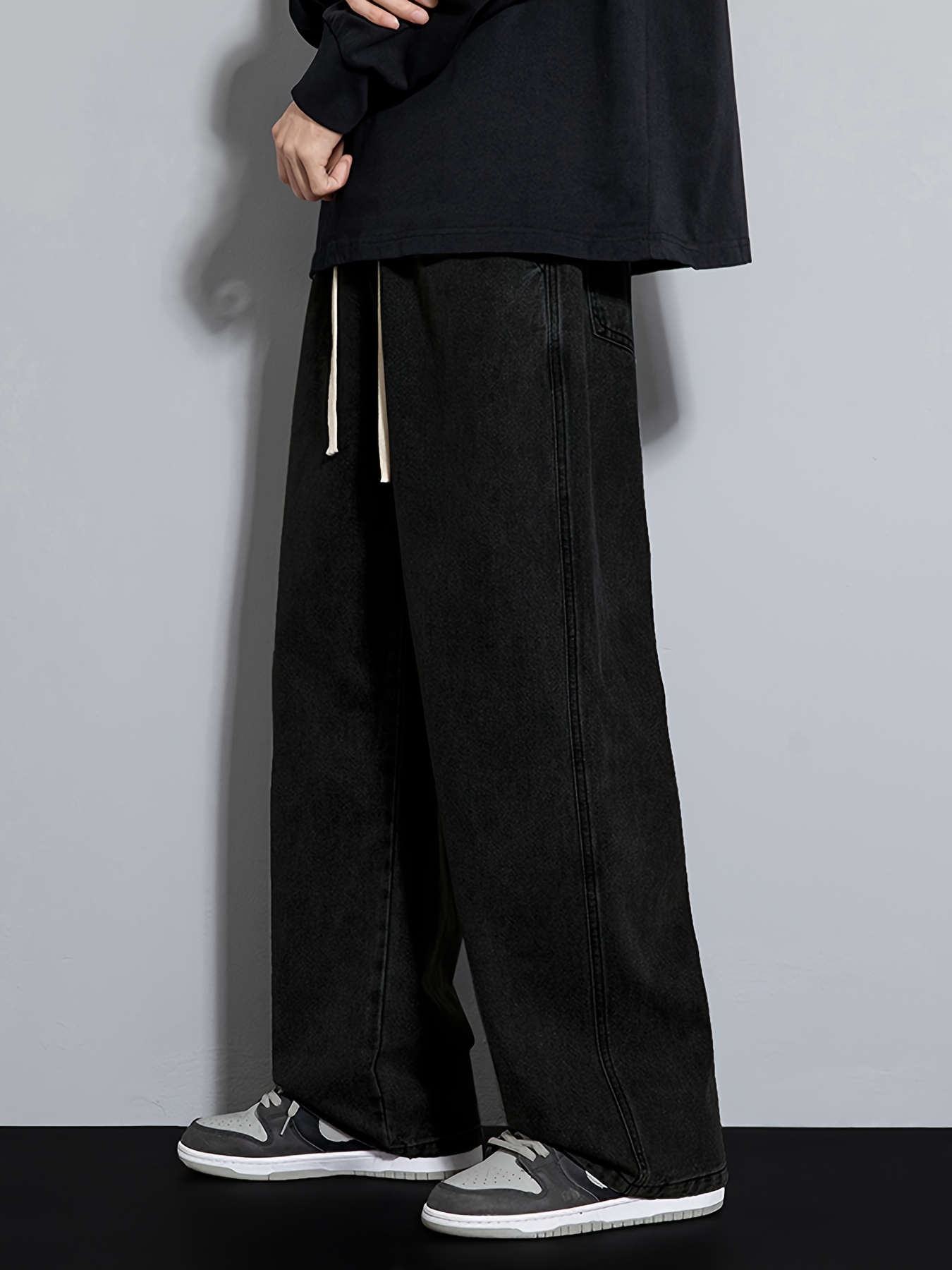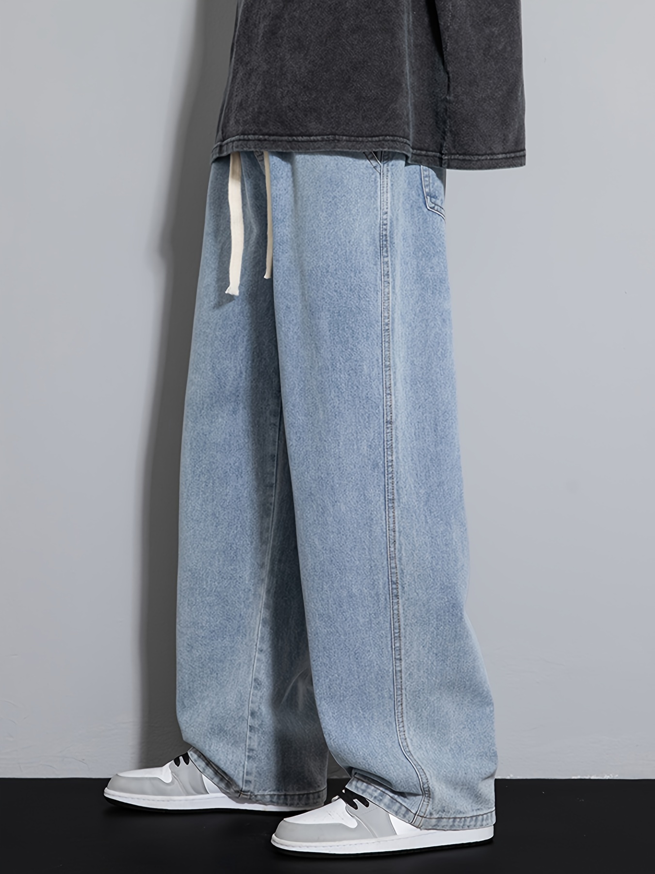 Men's Street Style Wide Leg Denim Jeans, Casual Drawstring Pants, Hip-Hop Loose Fit Jeans