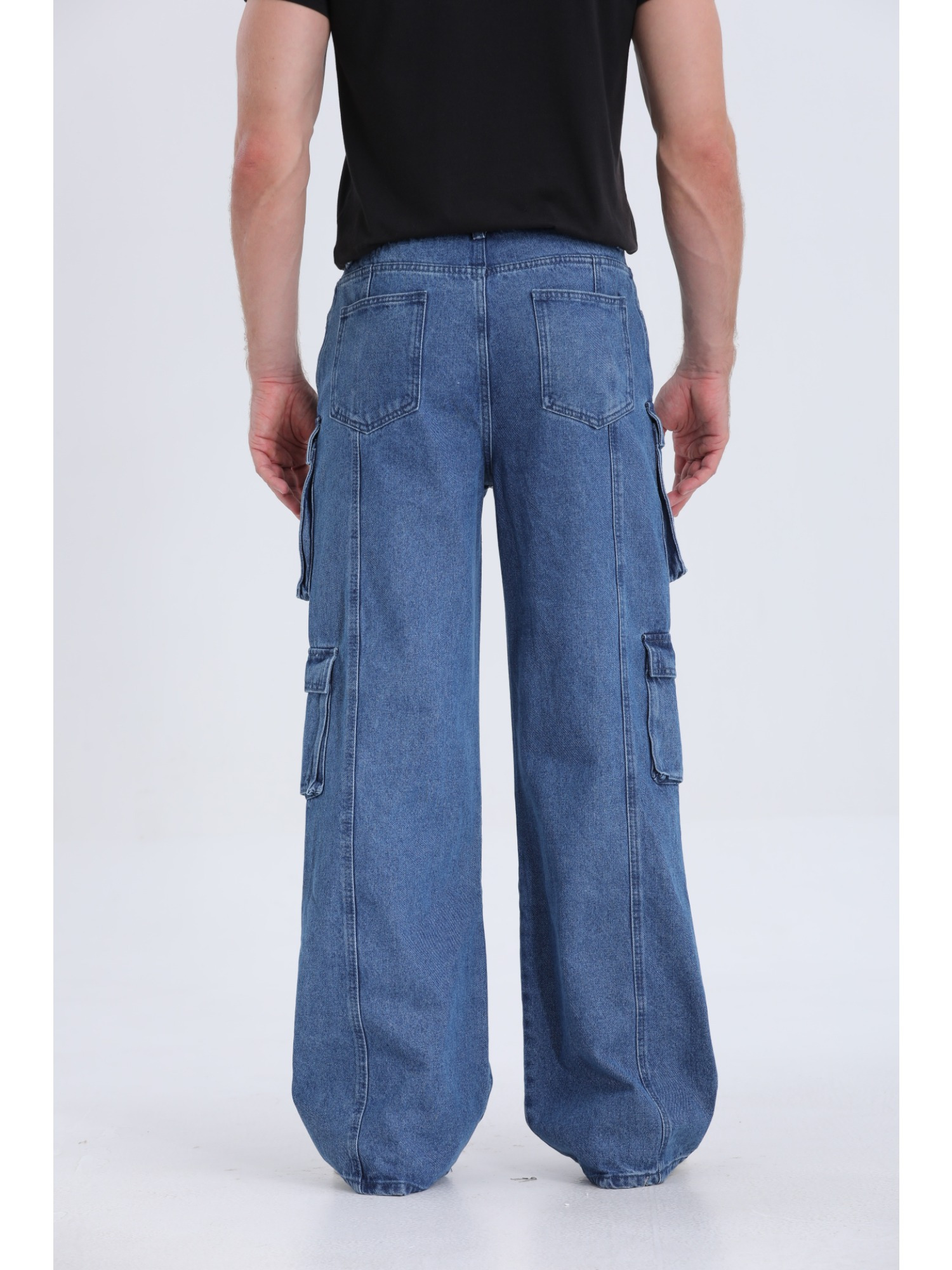 Enhance your daily look with these Men's Blue Multi-Pocket Denim Jeans. Tailored for the contemporary gentleman, these pants blend a relaxed fit with a straight-leg cut, striking a harmonious mix of ease and city chic. The lively blue color brings a fashionable touch, elevating these jeans to a key item in your closet. Equipped with numerous useful pockets, they offer plenty of space for your necessities, infusing a hint of functionality into their stylish appearance.