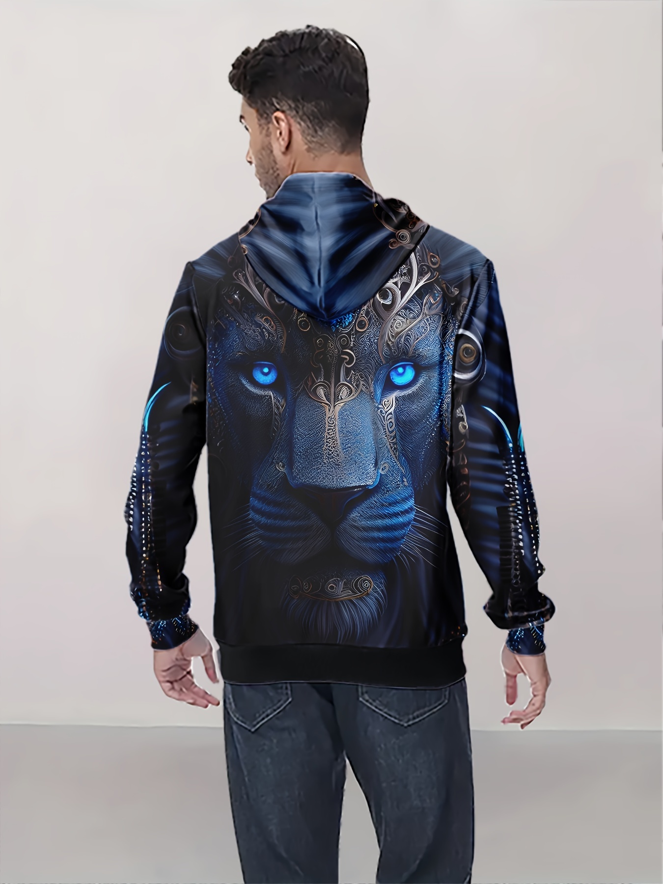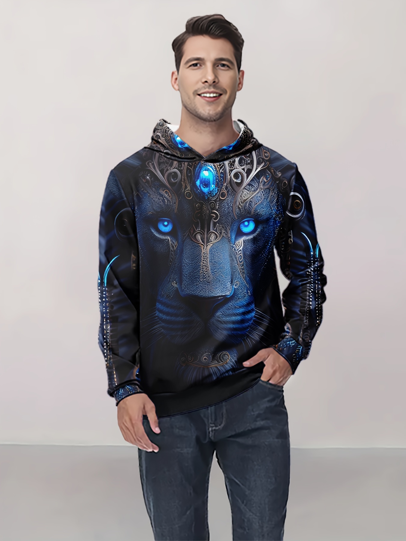 Casual Pullover Hoodie With Random Print Design, Polyester Fiber, Relaxed Fit, Digital Printing, Machine Washable