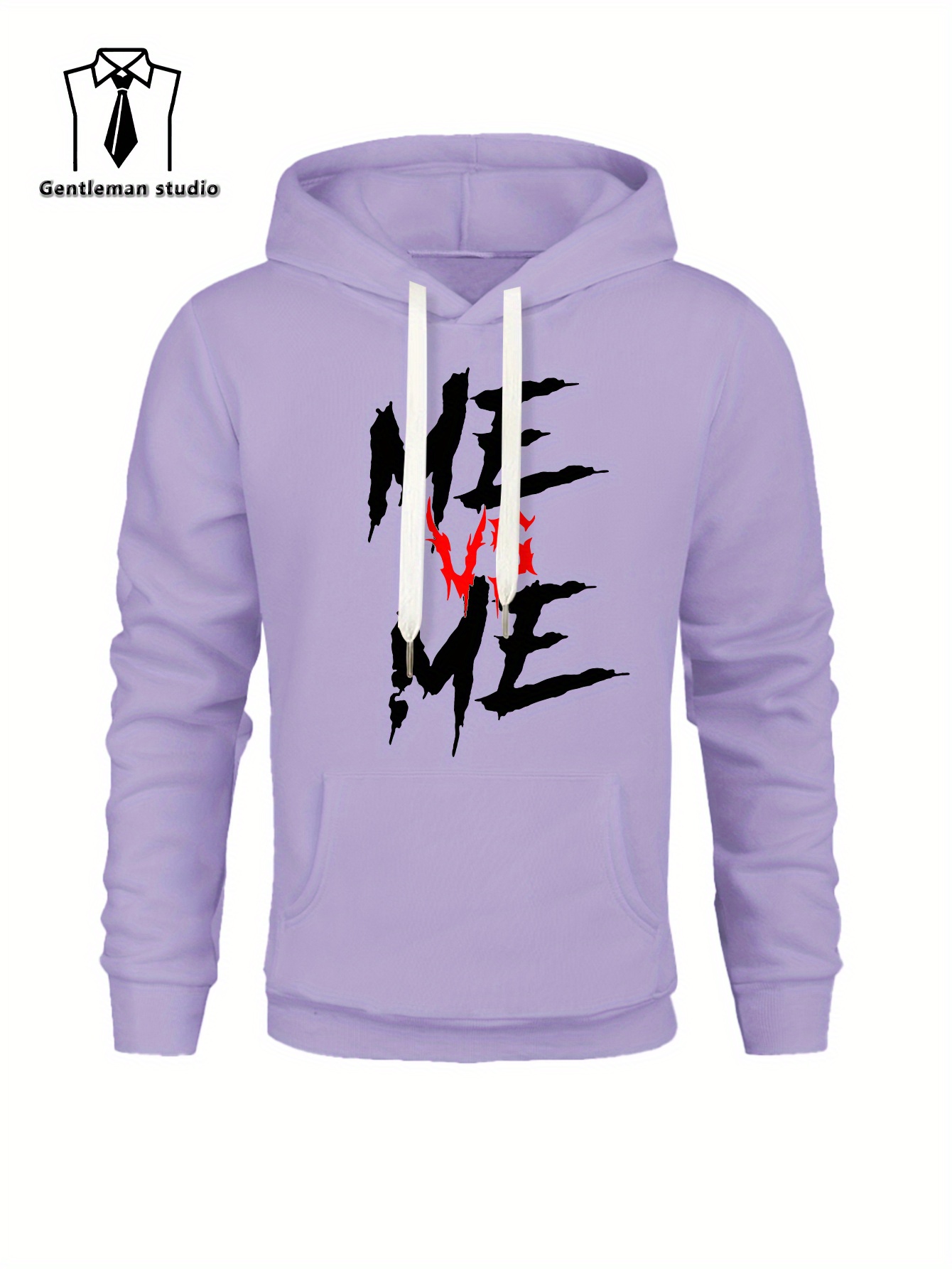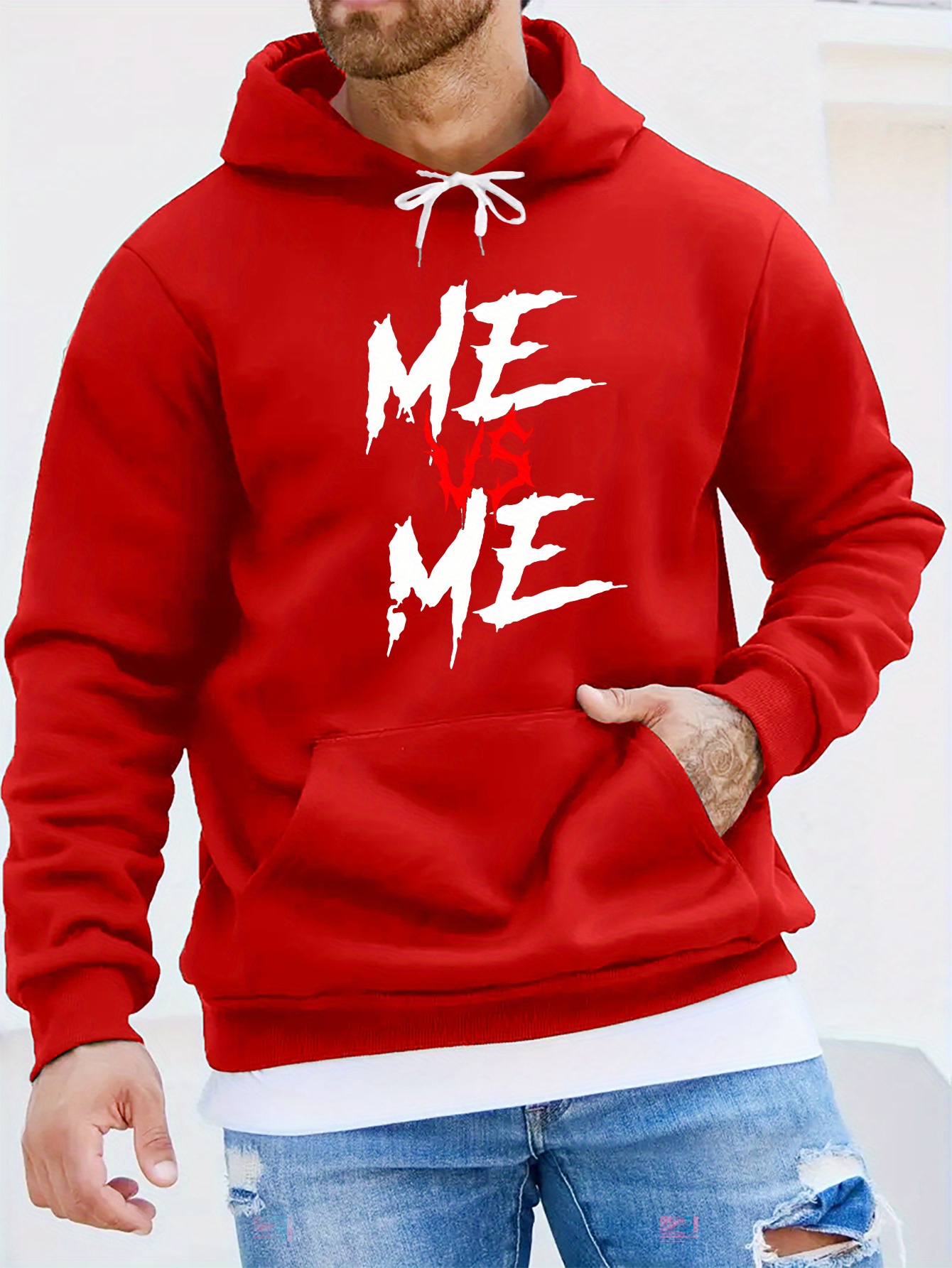 ME VS ME Print, Men's Casual and Cozy Hoodies, Trendy Long Sleeve Hooded Sweatshirt, Casual Versatile Top for Autumn Winter
