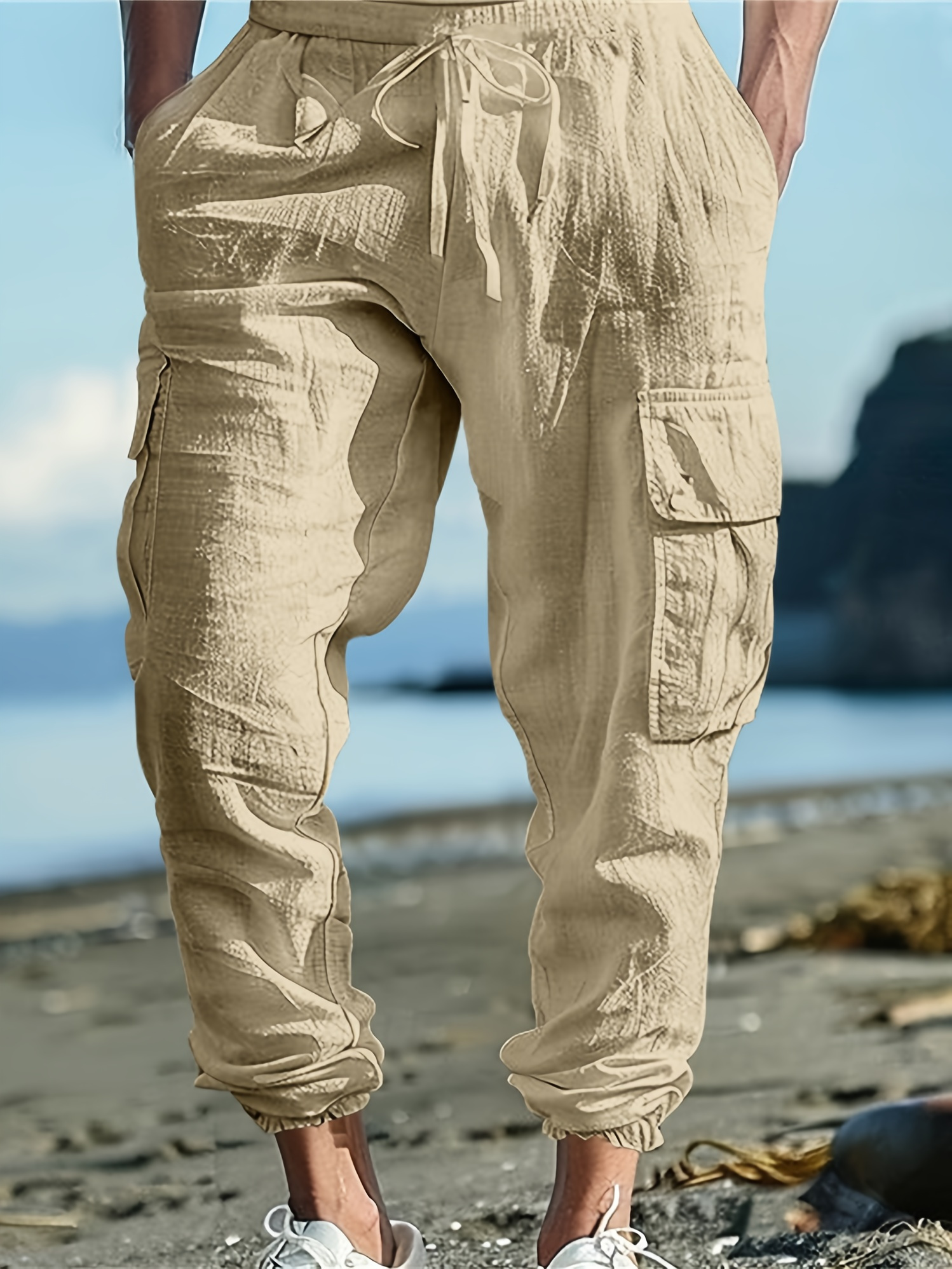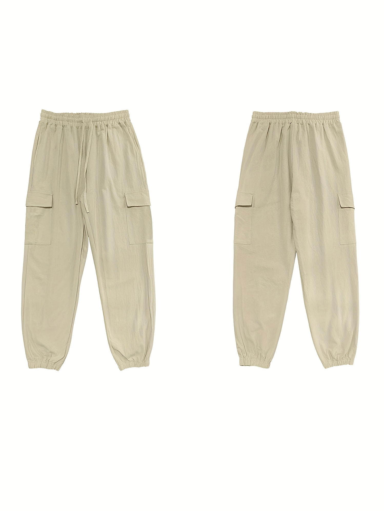Men's Casual Cargo Pants with Drawstring - Soft, Loose Fit with Multiple Pockets, Solid Color, Machine Washable