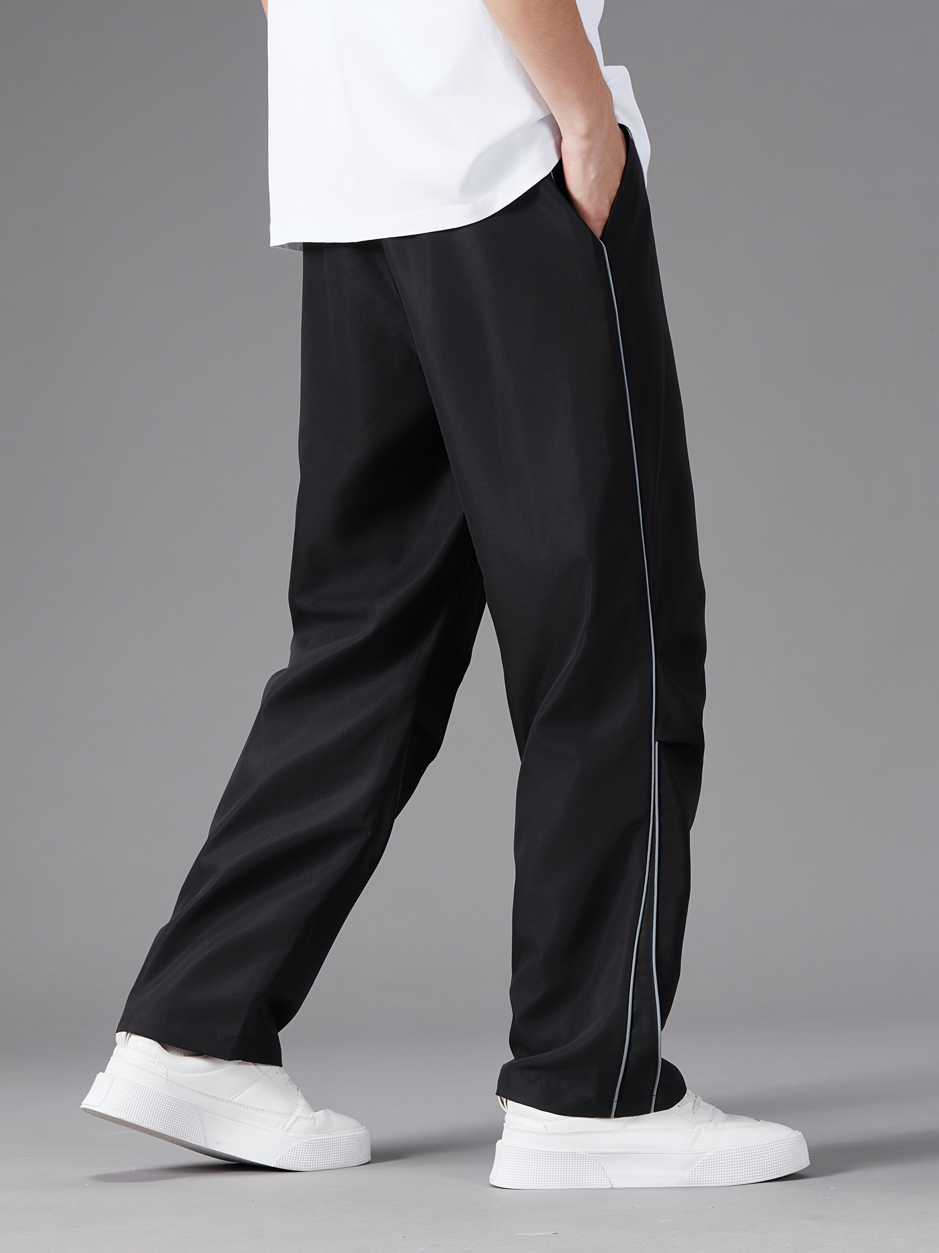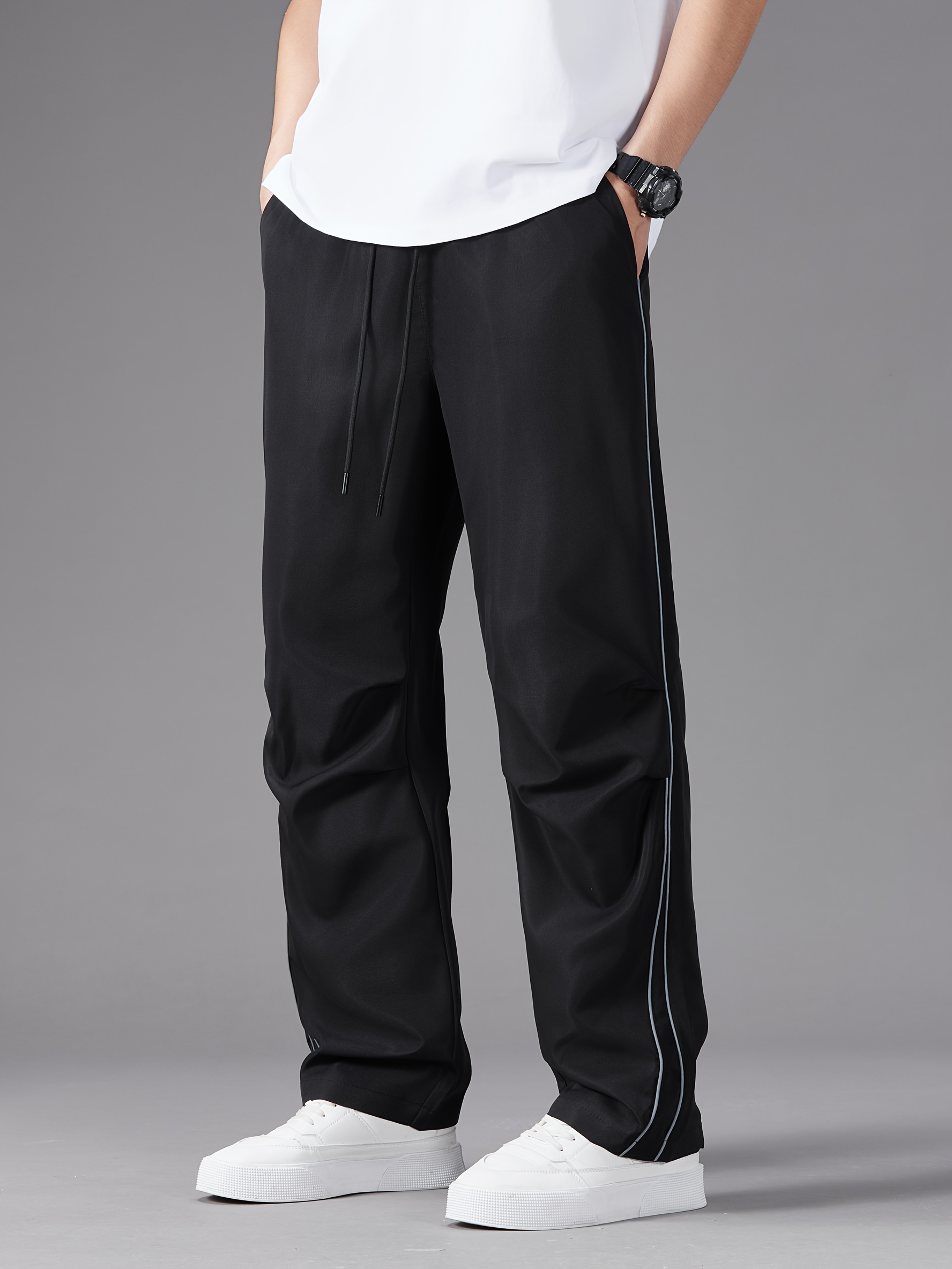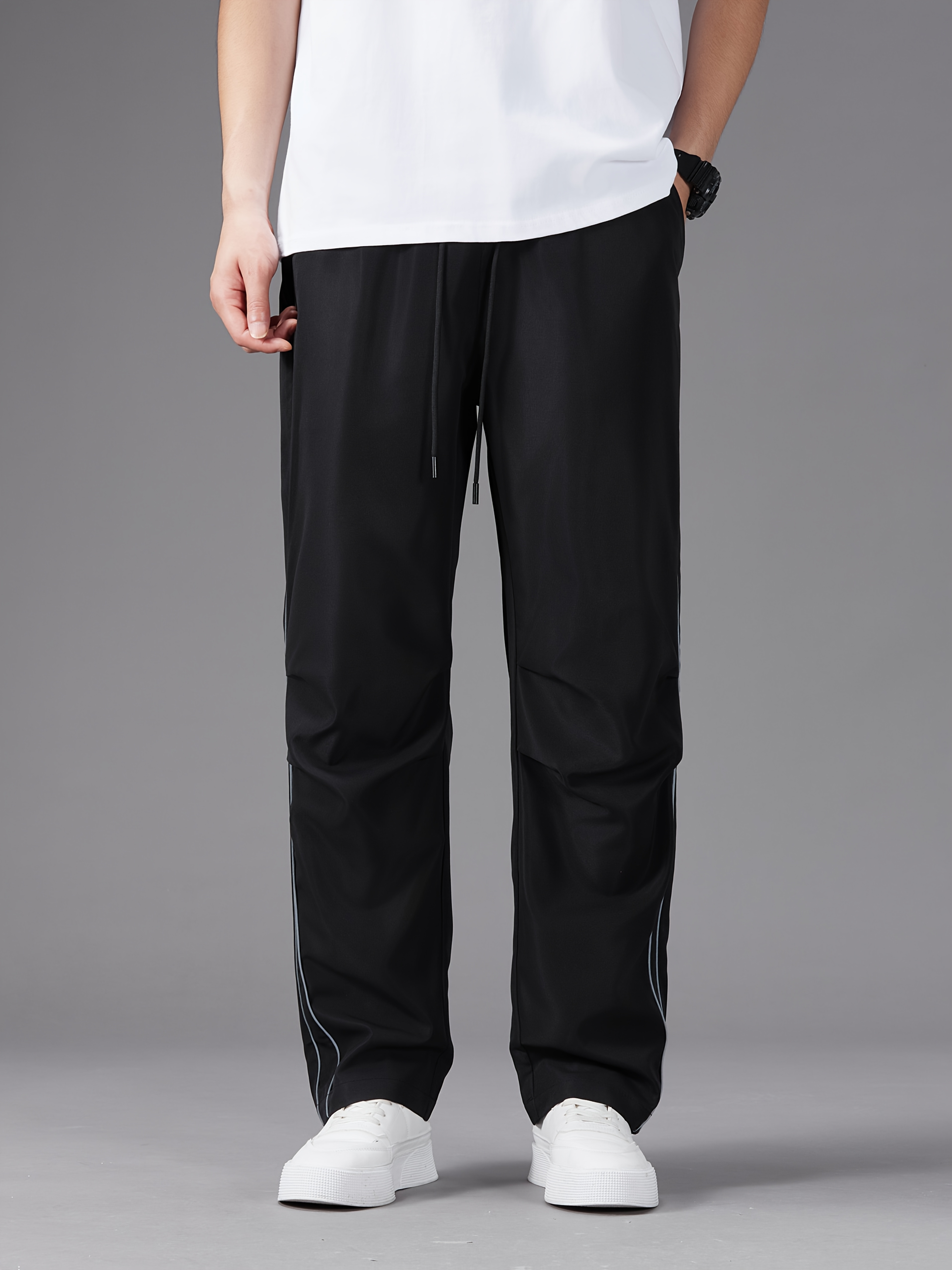 Men'S Casual Joggers, Polyester 100%, Basics Style, Solid Color, Regular Fit Straight Leg, with Drawstring Waist, for Spring/Fall - Non-Stretch Woven Fabric