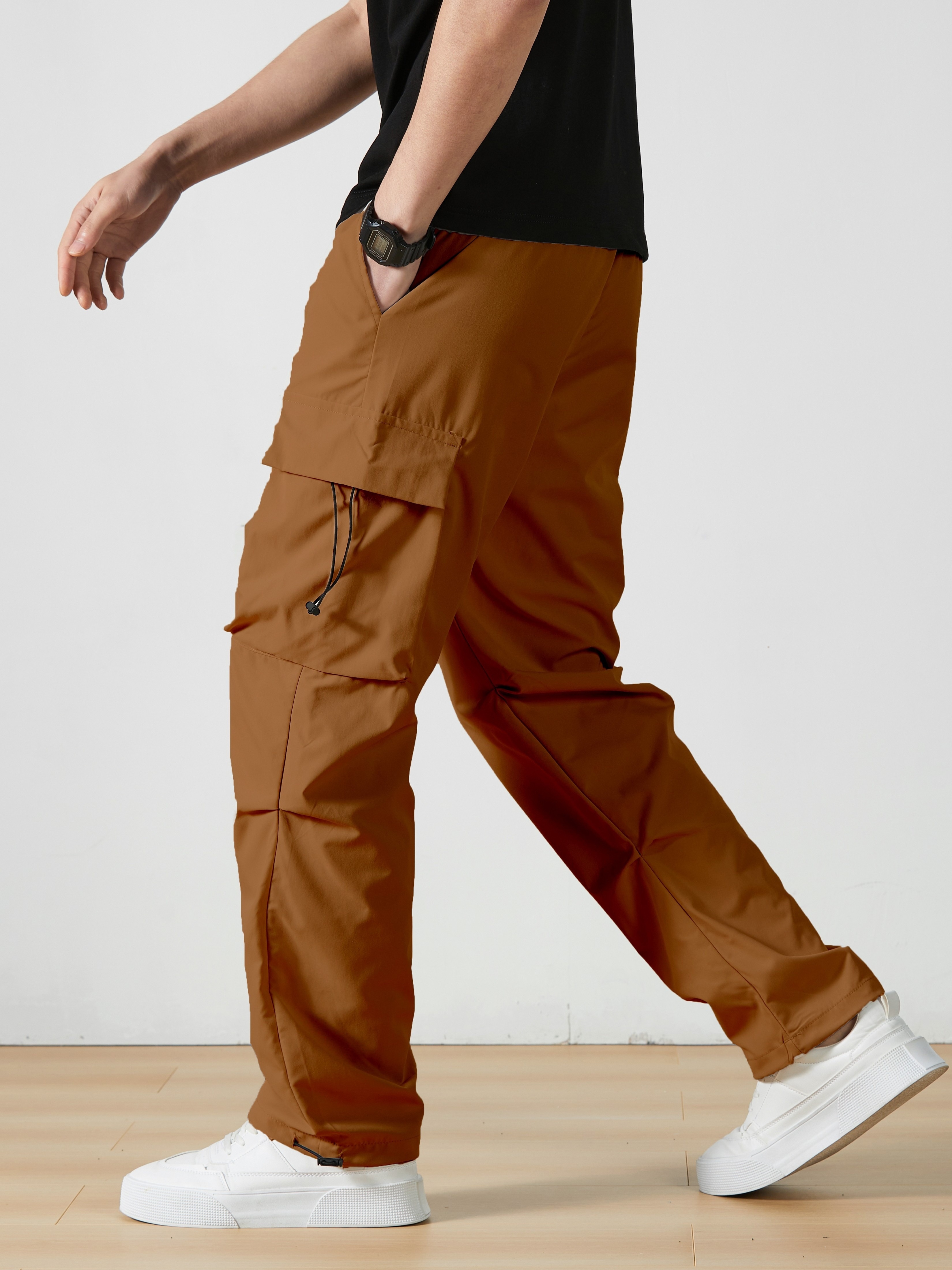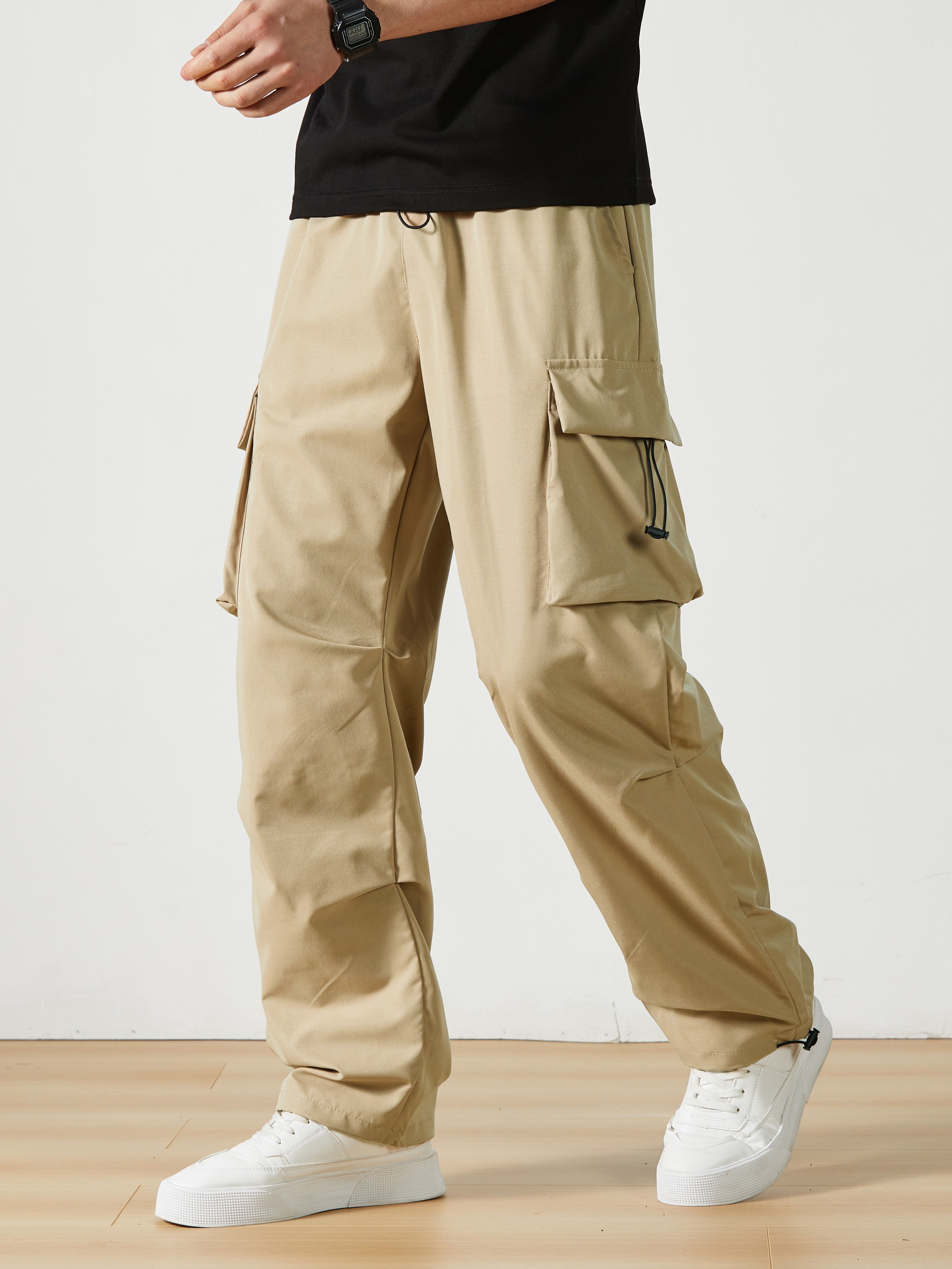 Men's Casual Flap Pocket Straight Leg Cargo Pants, Street Style Casual Pants For Outdoor Activities
