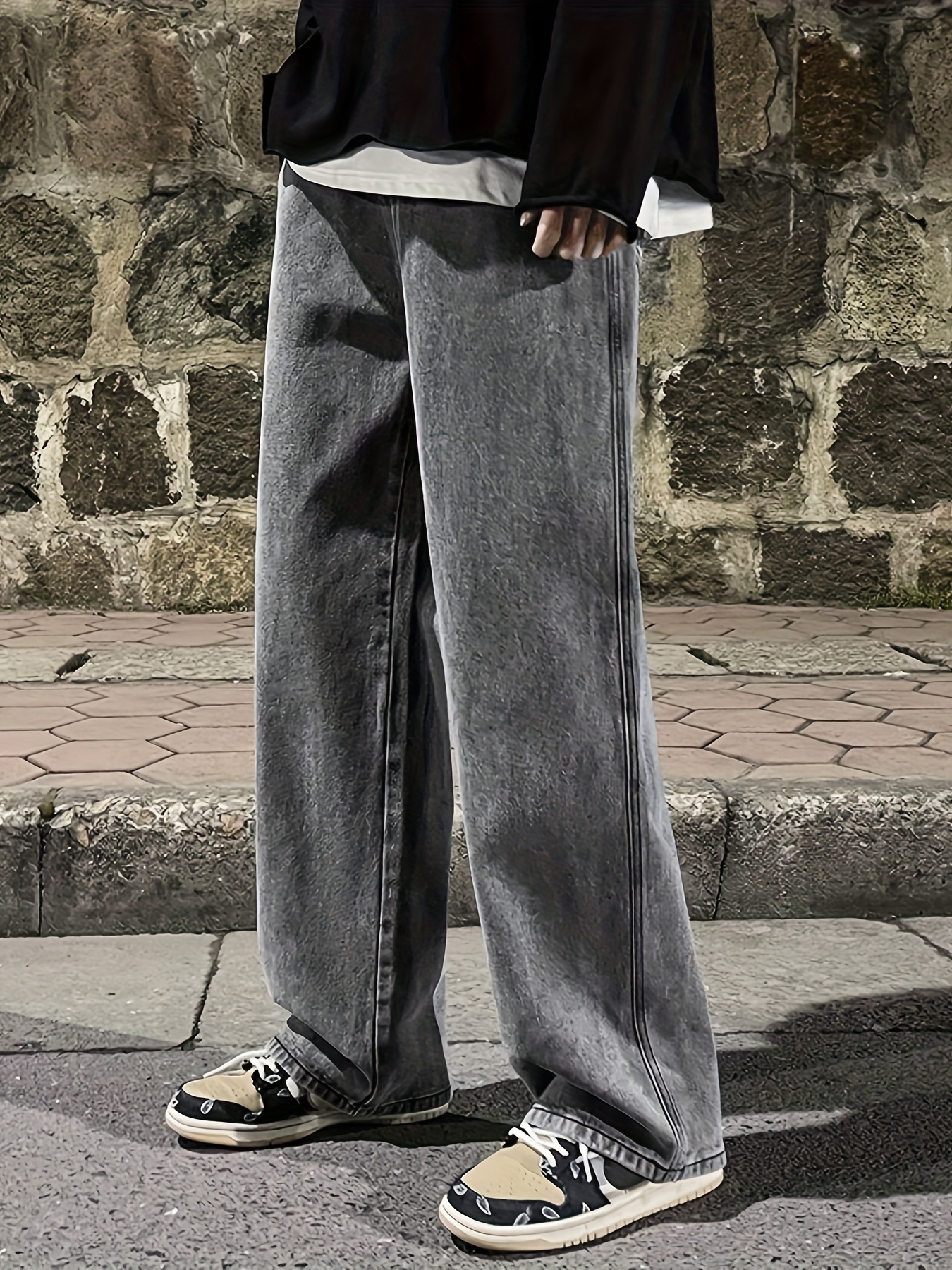 Men's Fashion Solid Loose Fit Straight Leg Jeans, Casual Street Style Denim Pants For Casual Daily Wear