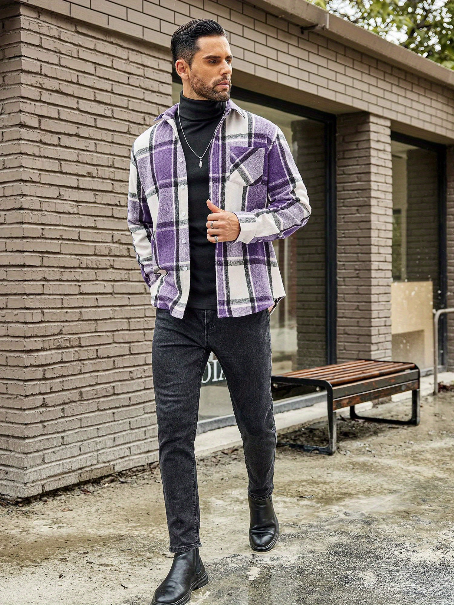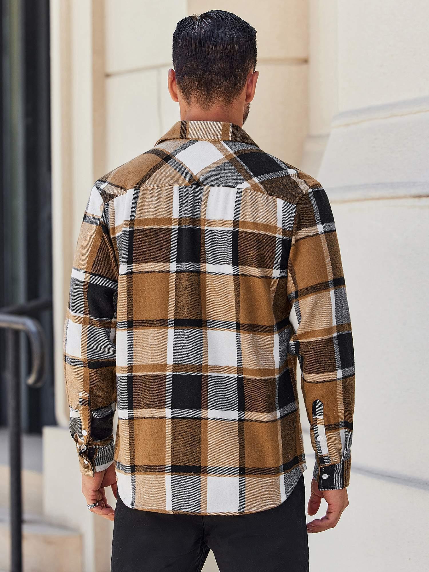 Mens Flannel Shirt Long Sleeve Plaid Jacket Casual Button Down Shirts Shacket
