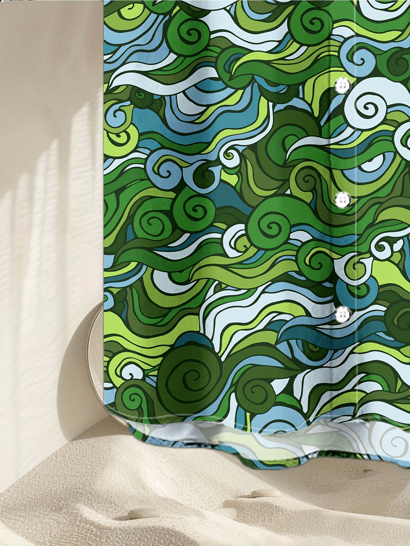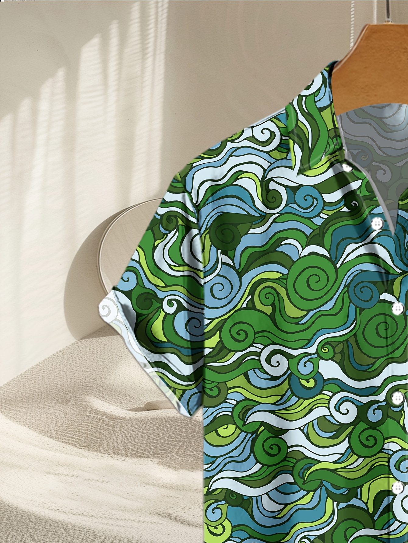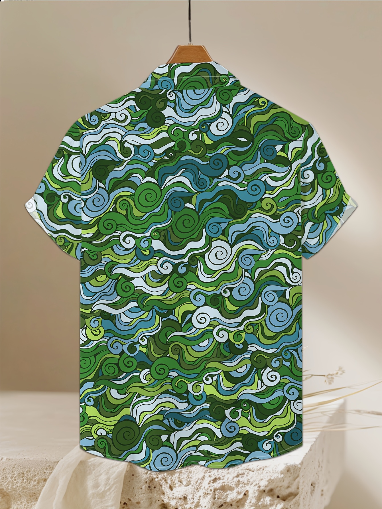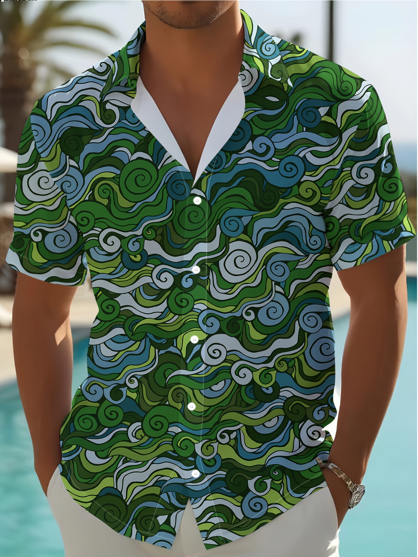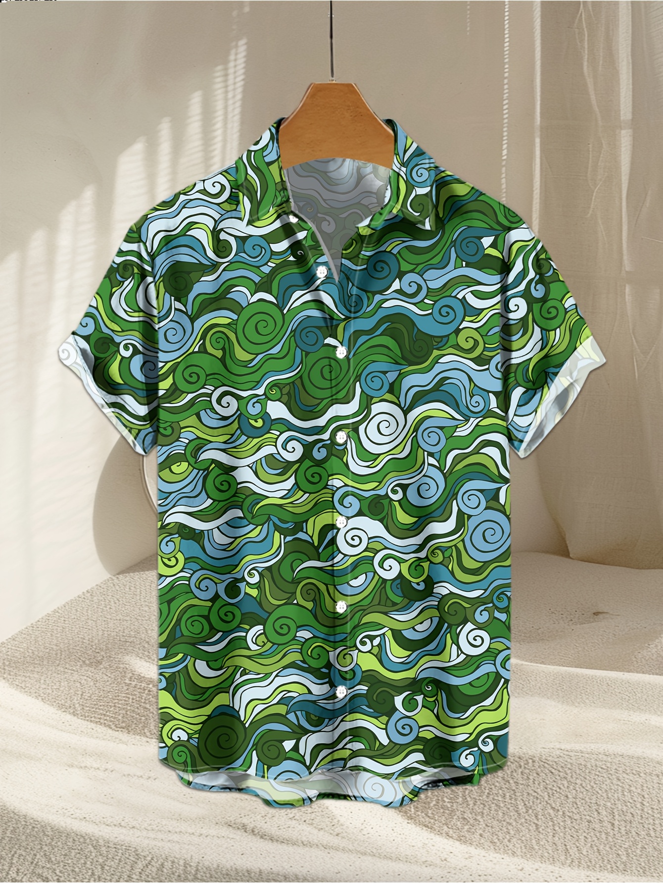 Men's Novelty Geometric Print Button-Up Shirt - Casual, Breathable Polyester, Machine Washable