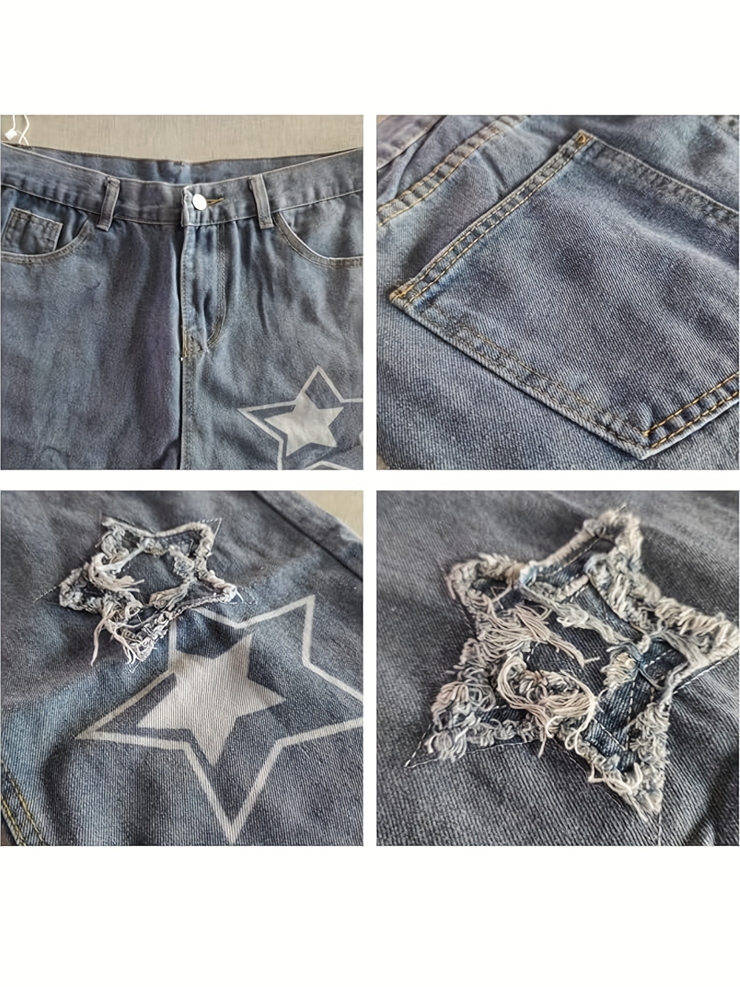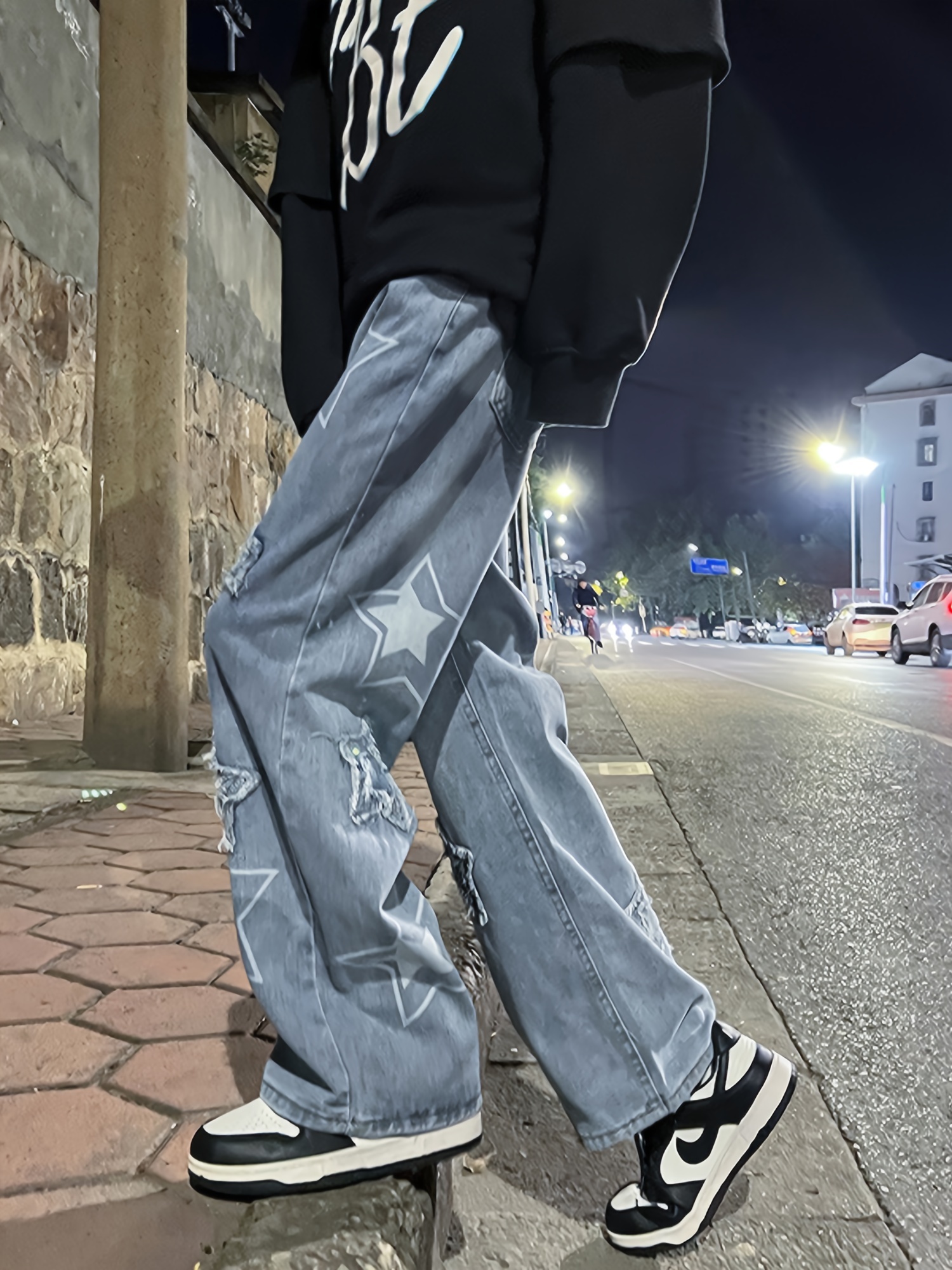 Vintage Men's Korean Denim Pants Y2K Cltohes Streetwear Printed Patchwork Male Baggy Jeans Straight Trousers